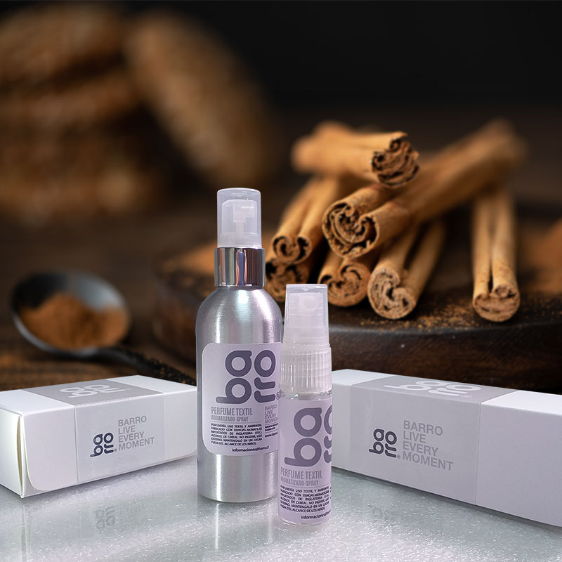 Perfume textil fabricado con esencias aromáticas importadas de UK y alcohol de cereal, donde se combinan los mejores ingredientes para lograr un producto de calidad. En dos formatos de botella en vidrio y aluminio, que permite la mejor conservación de los aromas y calidad del producto.