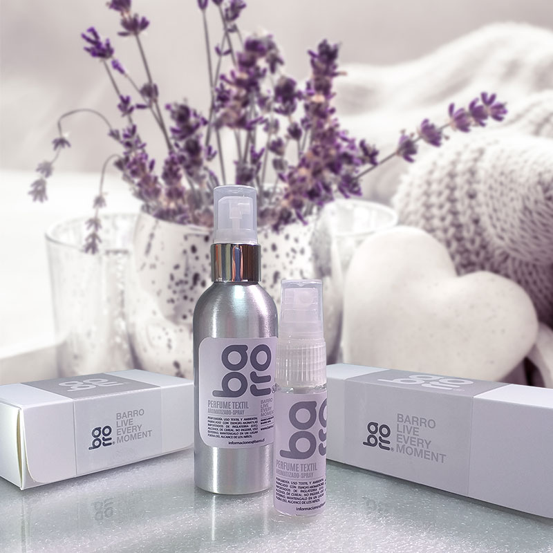 Perfume textil fabricado con esencias aromáticas importadas de UK y alcohol de cereal, donde se combinan los mejores ingredientes para lograr un producto de calidad. En dos formatos de botella en vidrio y aluminio, que permite la mejor conservación de los aromas y calidad del producto.